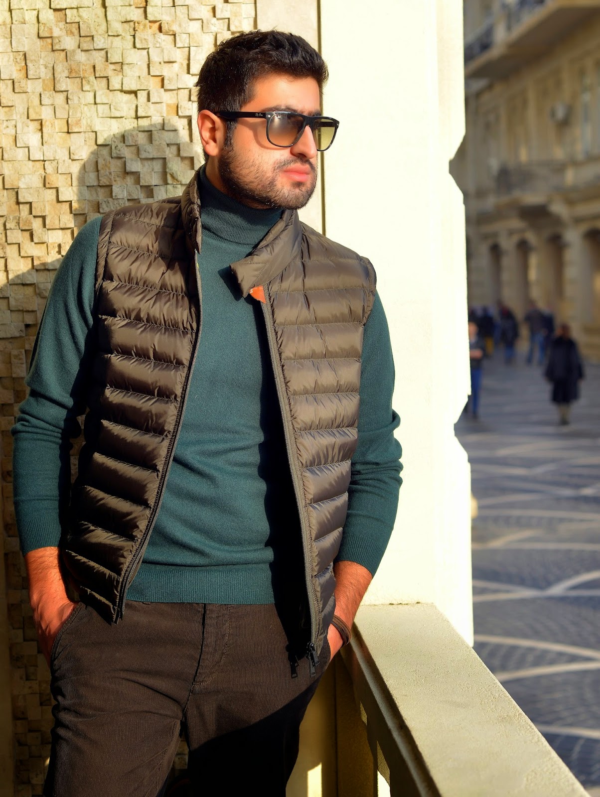 На мне очень теплый и уютный свитер, под ним бордовая, вельветовая рубашка отлично сочетающая по цветовой гамме с общим образом. Брюки так же вельветовые, но бежевые, что не портит, а наоборот, создает в то же время контраст и хорошо подходит под обувь и свитер.
